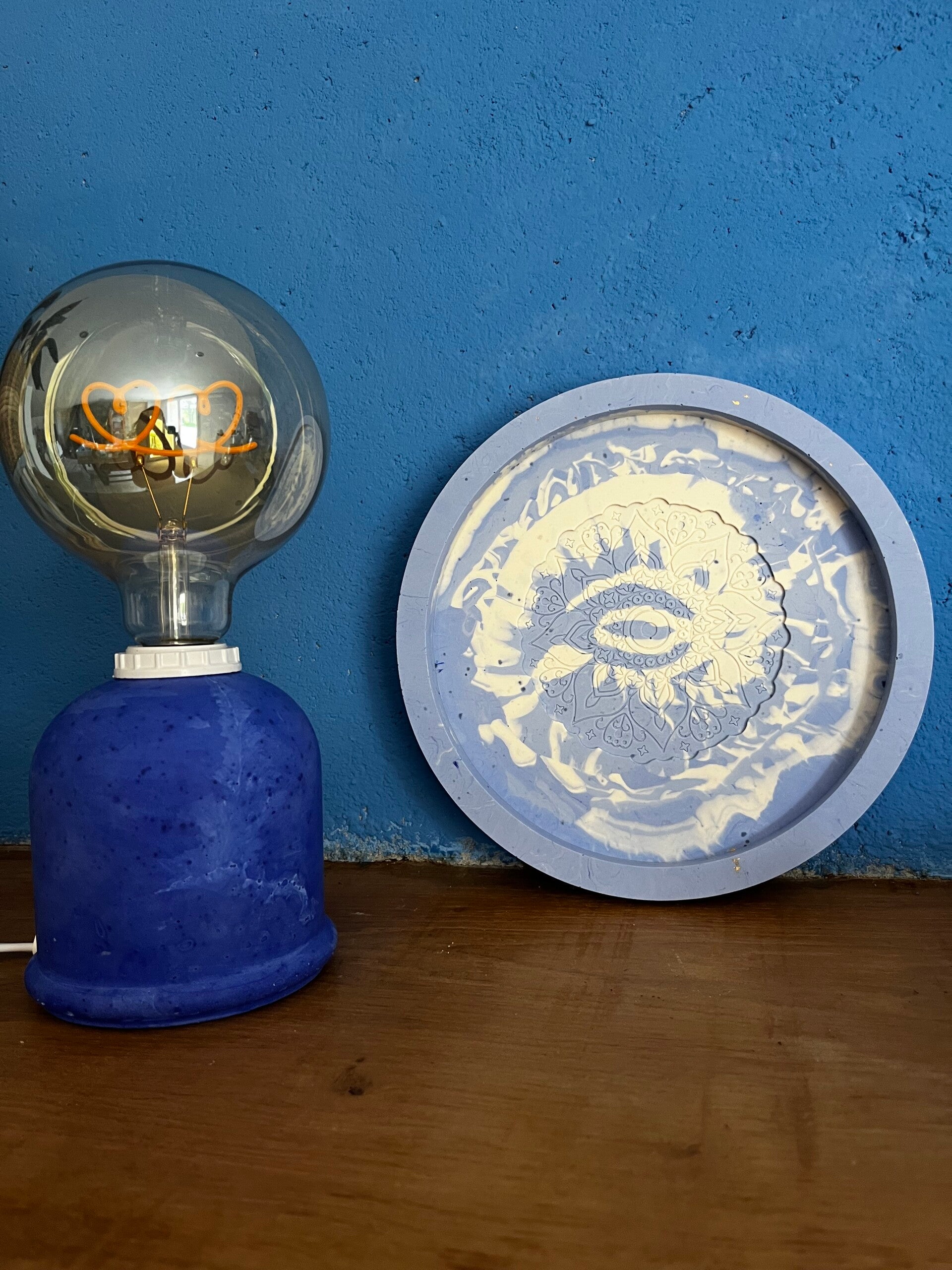 Centre de table réalisé en jesmonite avec insert mandala.